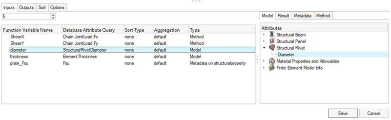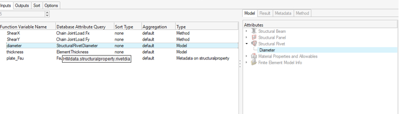 入力テーブルにリストされている各入力引数には、複数の列(最初は関数の変数名)があります。これには、関数定義で読み取られた変数名が入力されますが、影響を与えることなく上書きできます。これは参照専用です。