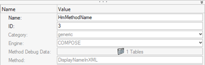 designpointmethodエンティティがHyperMeshデータベースで作成されると、ID、名前(HyperMeshエンティティ名)、および属性Method(.xmlファイルのdisplaynameの値に設定されます)が付属します。