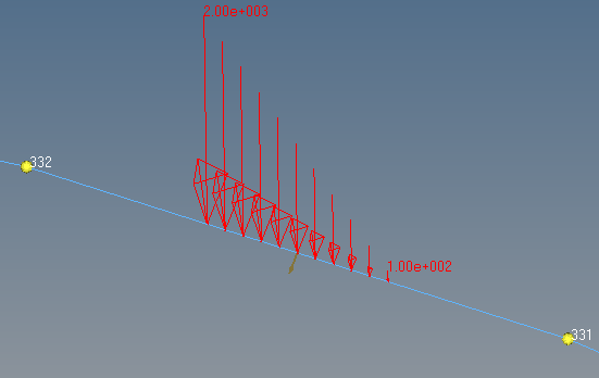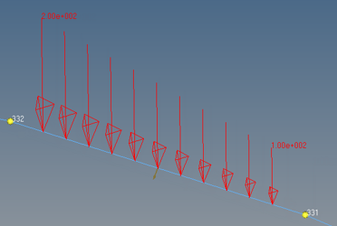 全体的または部分的に荷重がかけられている1D要素に対する圧力荷重を作成および確認します。