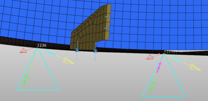 1. . 左側のSPCでは4つのDOFがブロックされているため、これらを確認できます(X並進、Y並進、Z並進、Z回転)。右側のSPCではすべてのDOFがブロックされているため、これら6つのDOFに対応する6つの矢印を確認できます。