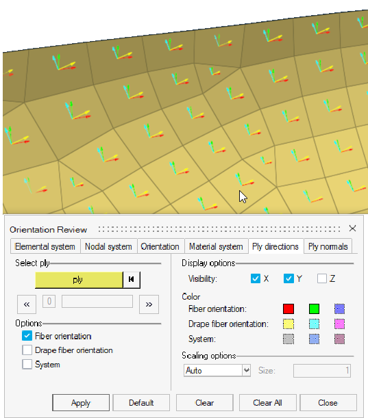 公称繊維とドレープされた繊維の両方のプライ方向を可視化できます。