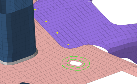 ワッシャー領域を引き続き認識できるように、ワッシャー要素のみをリメッシュします。