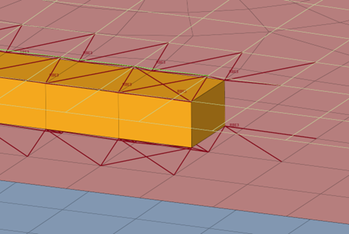最初のケースでは、RBE3のみが使用され、従属節点はヘキサ要素から、独立節点はリンクから得られます。2番目のケースでは、RBE2がヘキサ要素の節点をRBE3の従属節点に接続します。