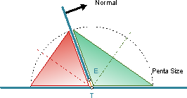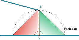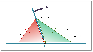 | right-angled | 二等分線中心に直角三角形のペンタが作成されます。このチェックボックスを非選択にし、適合角度のペンタを作成します。 ![]() ![]() 注: penta (mig)およびpenta (mig + T)でのみ使用できます。