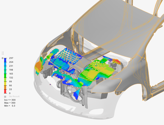 Hard Partsタブでは、車両外側の硬質パートの距離コンター分布をプロットして、パッケージスペースの検出を決定できます。