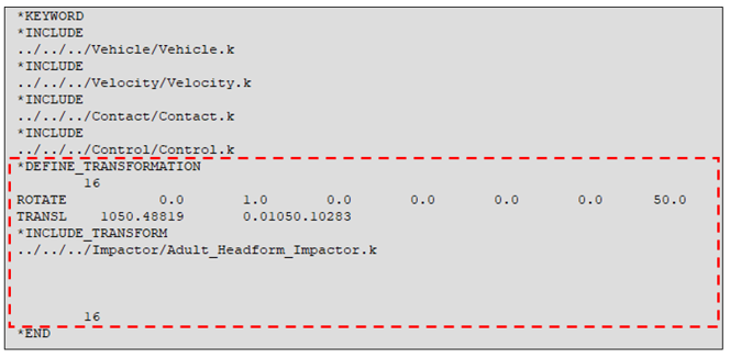 - インパクターのインクルードファイルは*INCLUDE_TRANSFORMとして定義され、*DEFINE_TRANSFORMカードは自動的に生成されて、*INCLUDE_TRANSFORMに割り当てられます。