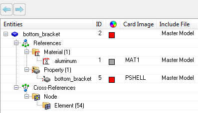 で表され、指定された選択によって参照されるエンティティに対応しています。階層は、モデル内の選択されたエンティティから辿って表示され、選択されたエンティティから参照されるエンティティがリストされます。コンポーネントの場合、Referencesフォルダーには、コンポーネントに含まれる要素、材料、プロパティが表示されます。