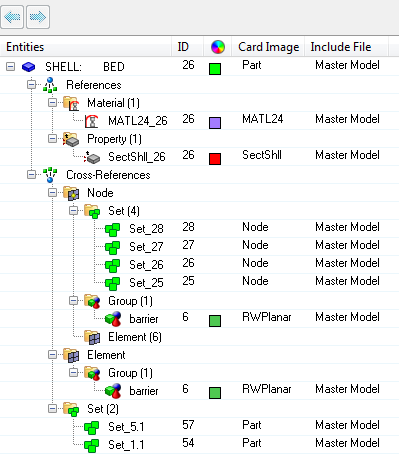 接触、境界条件など、それ自体はエンティティを持たず、他のエンティティを参照するカードイメージの場合(つまりはセットの場合)、セットに含まれるエンティティがReferenceブラウザでハイライト表示されます。