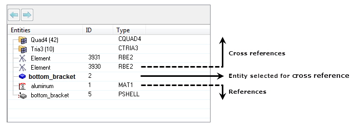 )というサブフォルダーを持ち、選択されたコンポーネントの節点または要素が参照されるエンティティが一覧表示されます。