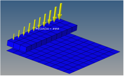 | PLOAD4 | Pressure | Defines a load on a face of a HEXA, PENTA, TETRA, PYRA, TRIA3, TRIA6, QUAD4, or QUAD8 element. It can also be used to define the EXCITEID field (Amplitude "A") of dynamic loads in RLOAD1, RLOAD2, TLOAD1 and TLOAD2 Bulk Data Entries. Additionally, the PLOAD4 entry can be defined as Follower Loads in Large Displacement Nonlinear Analysis. |