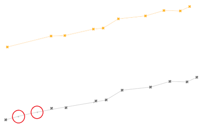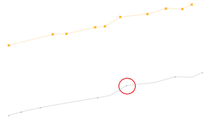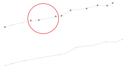 - これは、1つのライン上での3つのポイント間に許容される最小角度を指定します。2つのポイントと隣接する2つのポイントの角度が指定した角度より小さい場合、このポイントはライン上の不連続点と見なされそのポイントにジョイントが置かれます。