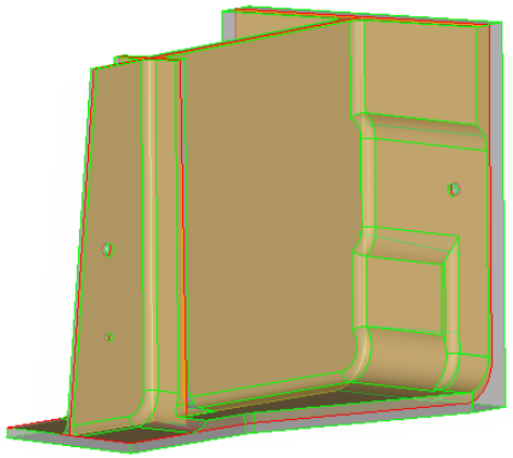 - モデルの中で、平面の部分を中間サーフェスとして使用できる場所を特定します。モデル内の残りの場所、つまり、中立面サーフェスとして使用できない平面位置には、Offsetオプションと同じアルゴリズムが使用され、モデルの側面からのオフセットによって中立面が作成されます。