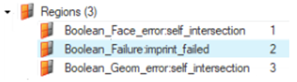 複雑な形状を操作する場合、パラソリッドオプシ ョ ンを使用すると、モデルブラウザ内に問題領域を作成することによりそれ以外の部分の形状に関しては問題ないものとして返すことができます。以下の画像は、例として、いくつかの類似領域を示しています。図 2.