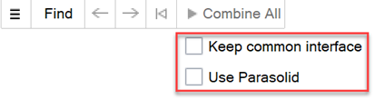 ブーリアンツールをクリックすると、共有境界面を保持するか、パラソリッドを使用するかを選択できます。 図 1.