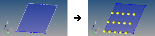 • サーフェスのパラメトリック領域は、表示されているサーフェス領域にスケールされます。節点は、表示されているサーフェス領域内に作成されます。