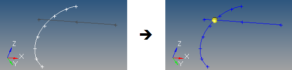 注: 複数のラインのカーブの中心を計算する際は、結合されたラインの最も適合するカーブの中心に、単一のポイント/節点が作成されます。