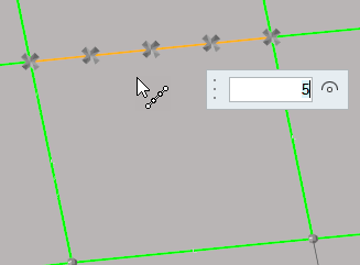 • 選択したライン上のポイント/節点の数を再補間するには、マイクロダイアログに新しい値を入力し、Enterキーを押します。