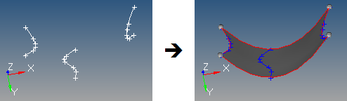 少なくとも2つの入力ラインが必要になります。3つ以上のラインが指定された場合、最初と最後のラインがサーフェスの端となり、すべての入力ラインにフィットするサーフェスになります。