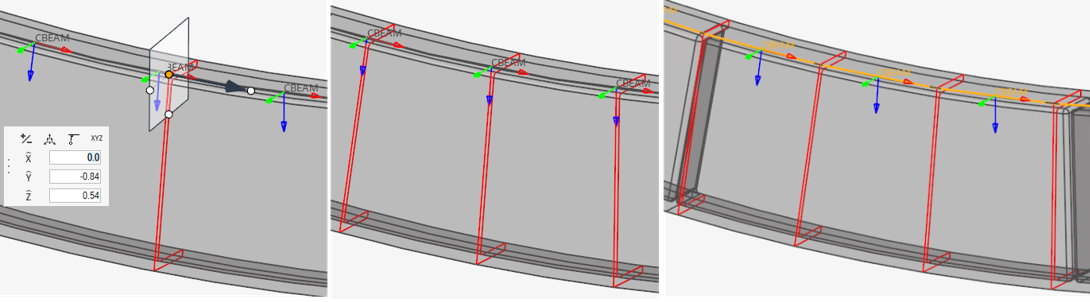ターゲット要素に正しい断面プロパティを与えるためには、断面内におけるマニピュレータの相対位置と局所的な法線に注意する必要があります。ターゲット要素は同じ向きに設定されている必要があります。