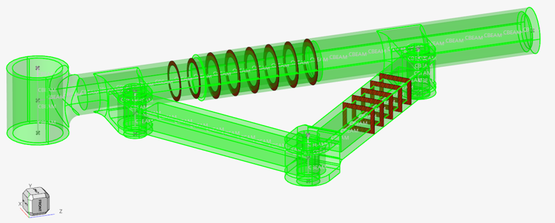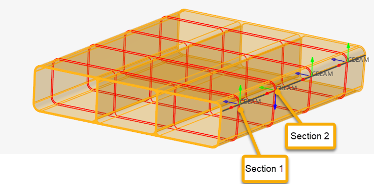 この設定は、OptiStructプロファイルでのみ利用できます。複合材シェルモデルとの各交差からツールで生成されたVABSファイルを用いて、OptiStruct PBEAMLを作成します。