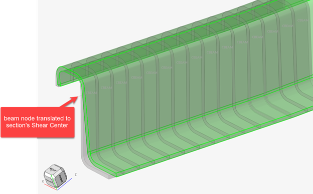 平行移動の場合、ビーム節点は、ソースに合致するように実際に平行移動されます。せん断中心または重心まで平行移動できます。