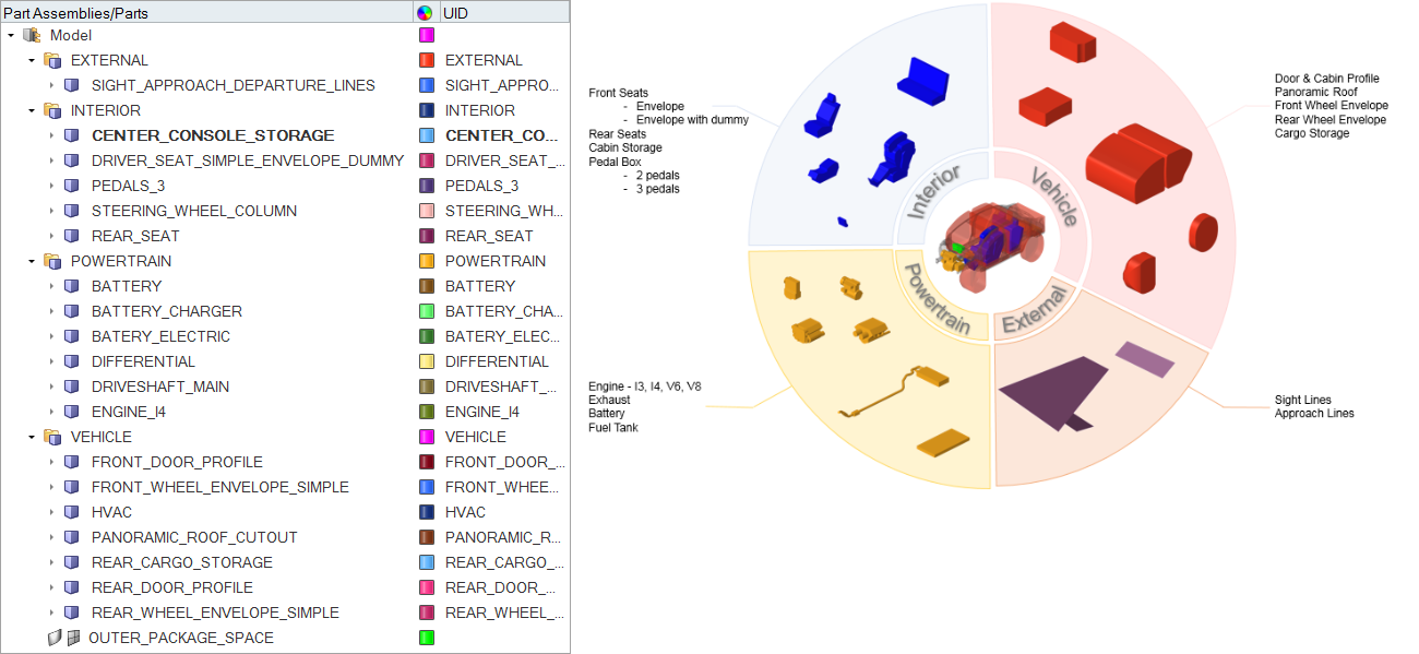 設計空間ライブラリは、自動車に特化したライブラリであり、これを使用することで、フルビークルアーキテクチャーの概念モデルを迅速に作成することができます。