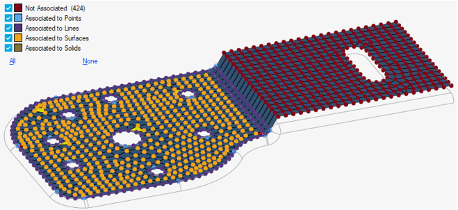 スキャンは、関連付けられた節点と関連付けられていない節点について行われます。デフォルトでは、関連付けられていない節点はガイドバー上の節点セレクターに追加されます。凡例は、どの節点がどの形状エンティティに関連付けられているかを示しています。
