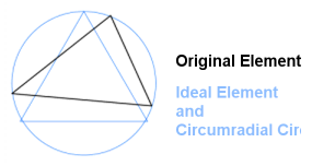 shape factor(形状係数)によって定義されます。Abaqusは、要素の面積を理想的な形をした要素の面積で割ることにより、三角形要素の形状係数を決定します。理想的な形状の要素は、等しい外接円半径(三角形の3つの頂点を通過する円の半径)を有する正三角形として定義されます。