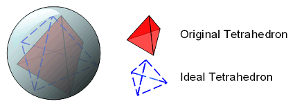 四面体要素の形状係数shape factorは、要素の体積を、同じ外接円半径をもつ理想の(等辺)四面体の体積で割ることによって決定されます。四面体要素の場合、外接円半径は、四面体の4つの頂角を通る球の半径です。