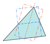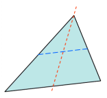 - 三角形要素については、1つの節点から向かい合うエッジの中点にラインが描かれます。次に、残りの1つの辺の中点同士を結ぶラインが描かれます。これらのラインは互いに、もしくは要素エッジのいずれかに必ずしも垂直ではありませんが、4つのポイント(中点3つと頂点)を与えます。