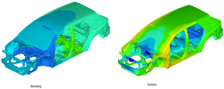 トポロジーとサイズの最適化例を下図に示します。荷重条件では、シンプルな曲げとねじれの2つの荷重ケースが考慮されています。図 2.