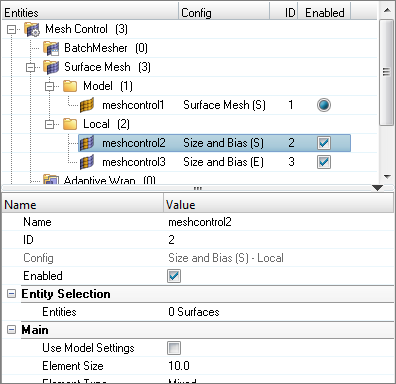 - ローカルメッシュコントロールではエンティティを定義する必要があります。ローカルメッシュコントロール選択内容の一部であるエンティティは、モデル / 直接選択内容の一部でもある必要があります。モデル / 直接選択内容の一部ではない局所エンティティは無視されます。