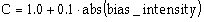 指数バイアシングでは、インターバルの大きさが幾何学的に増大し、連続する各インターバルが1 つ前よりも係数倍大きくなって、エッジ方向に進みます。その係数は、バイアシング強度の絶対値の1/10を1.0に加えたものです。この式は、強度ゼロがバイアシングなしを表わすよう選択され、適した値は [0,20]の範囲に納まります。負のバイアシング強度は単にエッジを逆転させ、より小さい要素が始点ではなく終点に置かれます。