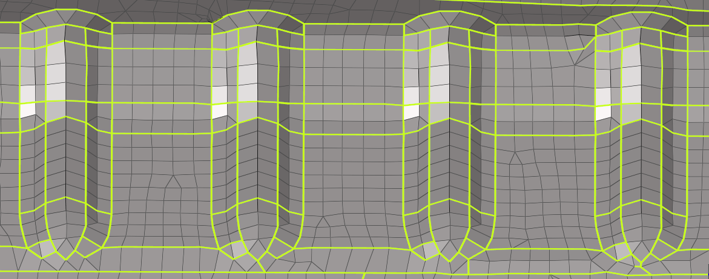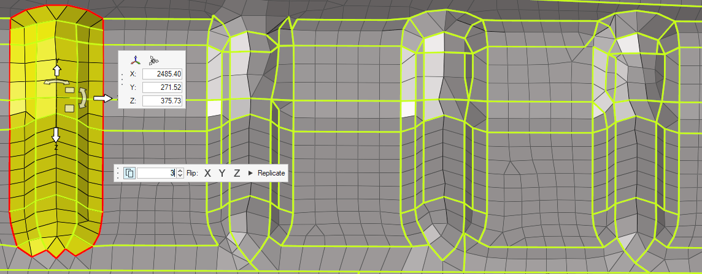 これは、モデル内に同じフィーチャーの複数のインスタンスが存在している場合に役立ちます。それらのインスタンスのうち1つのみのメッシュをクリーンアップし、準備してから、それらの変更内容を他の場所に複製できます。これは、フィーチャーをある場所から別の場所に移動したり、同一フィーチャーの複数のインスタンスを作成するなど、設計に変更を加える場合にも役立ちます。
