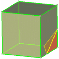 さらに、すべてのソリッド要素がマッピング可能であっても、それらがすべて一度にメッシングできるとは限りません。マッピング可能な各ソリッドを個別にメッシングする、もしくは一度に少しずつ行う必要があるかもしれません。個々のボリュームは、マップ可能かどうかを確認するため、4つの状態が用意されています。これらの状態はビューコントロールツールバーの”マップ可能”で設定されいてる色で表示されます。デフォルトの設定は以下のとおりです。図 1. . 左側の立方体は3方向にマッピング可能ですが、1つの角が割れてしまった場合は1方向のみにマッピング可能となります。そのコーナーは、さらに分割を行わない限りマッピング不可能です。