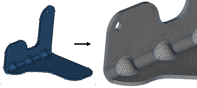 Thin Solidsツールを使って、薄肉のソリッドに3Dメッシュを作成します。最初に、選択されたフェイスセット上に最初に2Dメッシュを作成し、そのメッシュを引き伸ばしてソリッドのHexまたはWedge要素を作成します。