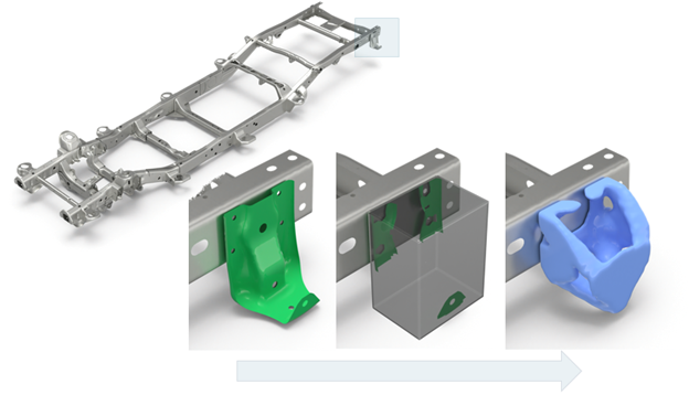 Autoboxは、パートまたはサブシステムに対してトポロジー最適化を実行できるように、ボクセル設計空間を作成します。