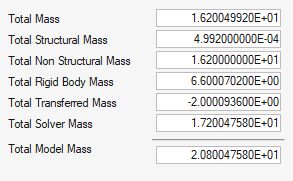 - FEメッシュに割り当てられたプロパティと材料特性から計算された、構造の物理的質量を表します。