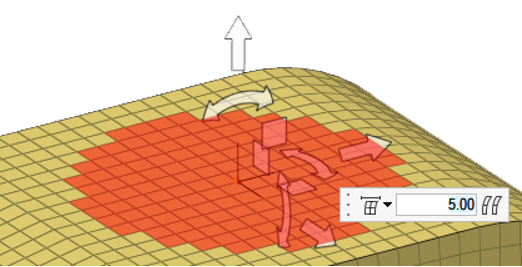 • 節点、フェイス、またはエッジを選択した場合:Moveツールを使ってエンティティを自由に移動します(下記のマニピュレータオプションを参照)。