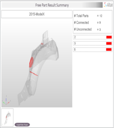 フリーパートチェックは、IDコネクターまたは共有節点を介して他のコンポーネントに結合されていないモデル内のコンポーネントを検出します。