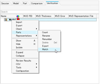 チェック後、グループが作成されPartブラウザ/Part Setブラウザの下にグループが作成されます。照合を実行するには、パートが必須です。VerificationブラウザまたはComparisonブラウザからルートのパートを選択し、Matchを実行します。