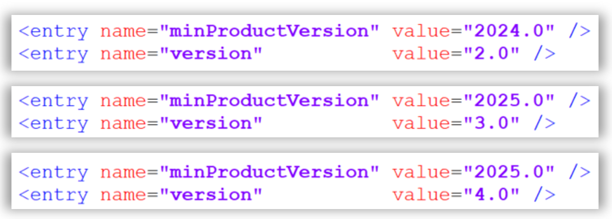 "minProductVersion"を持ち、最新"version"を持つ拡張機能が最初にロードされます。図 1.
