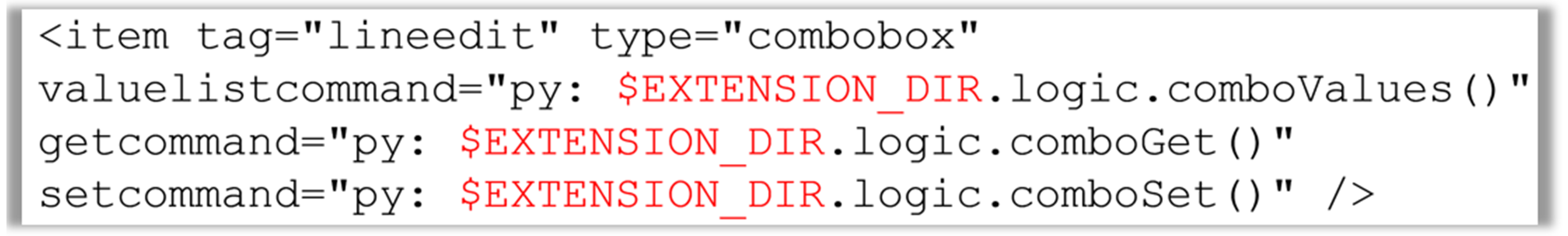 EXTENSION_DIR変数がXMLファイル内のすべてのコマンド属性でサポートされるようになりました。以前は$EXTENSION_DIR変数はコマンド属性にのみサポートされていました。図 3.