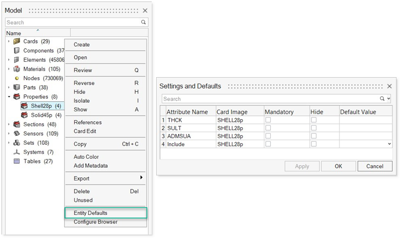 - エンティティのデフォルトを、Ansysインターフェイス内のProperties(プロパティ)で設定できるようになりました。