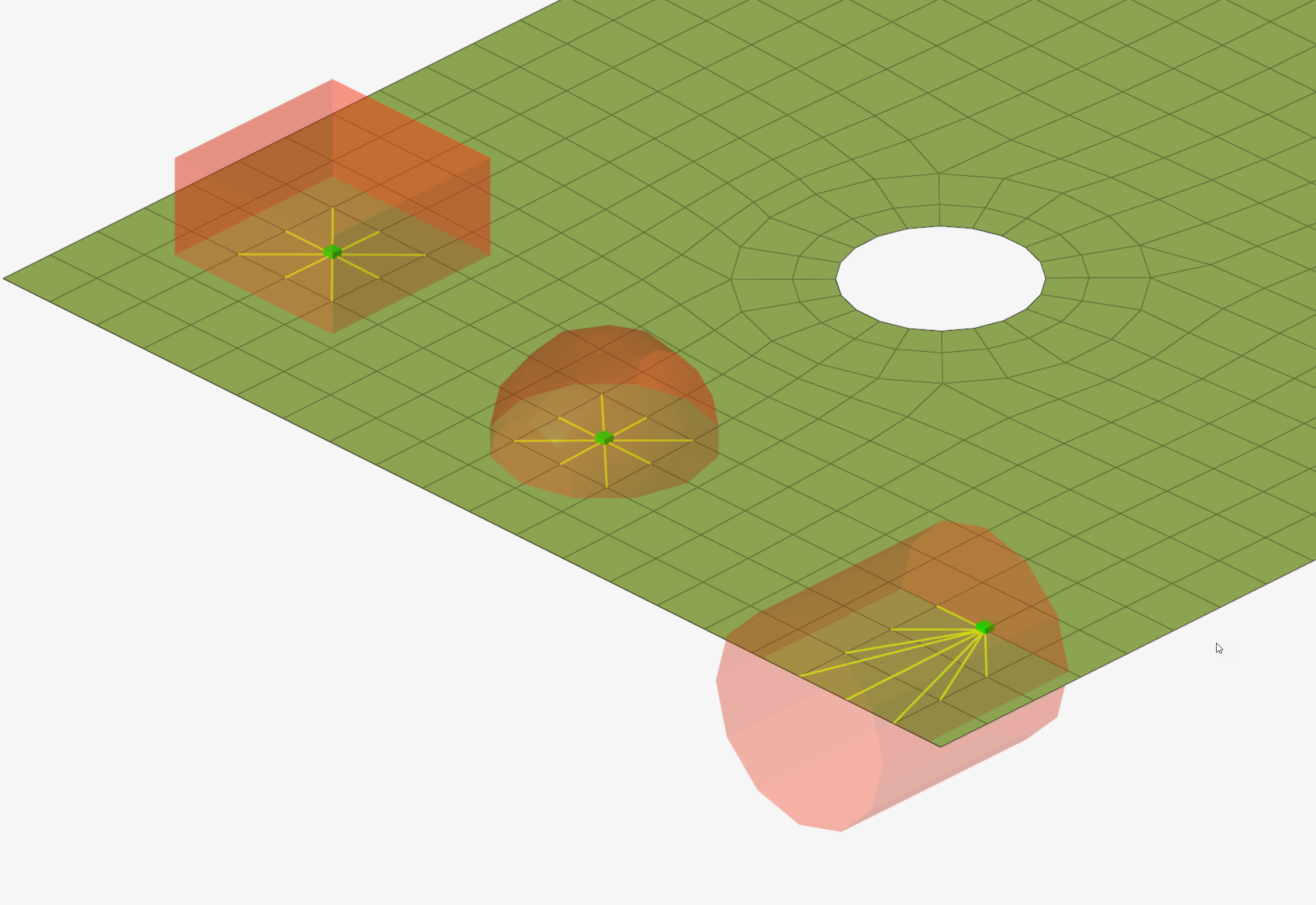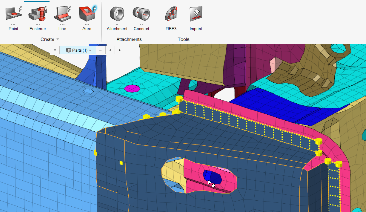 - これらの新しいアタッチメントオプションは、形状の選択と寸法記入を可能にします。パートリンクの選択範囲内の節点が選択されます。形状は、球、ボックス、円柱のいずれかです。