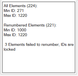 - テキストボックスが更新され、選択内のエンティティのIDがIDマネージャ-によってロックされているためにリナンバーに失敗した場合のフィードバックが表示されるようになりました。