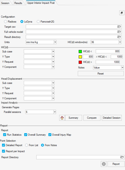 Upper Interior Impactツールは、FMVSS201U解析のポスト処理を容易にします。Radioss、LSDyna、Pamcrashインファーフェースプロファイルで利用可能です。図 8.