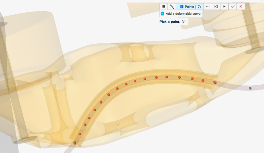 - 前のリリースでは、MotionViewとMotionSolveは可変形カーブの接触をサポートし、接触しているパイプ、ケーブル、チューブのモデリングに使用できるようになりました。本リリースでは、MotionViewでPolybeamエンティティを作成する際に、可変形カーブをグラフィックスで追加するオプションが提供されました。これにより、細長い要素を持つモデルのセットアップが効率化され、より迅速な設定が可能になりました。