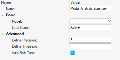 モーダル解析のサマリーをテーブルとしてレポートに追加します。