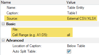 - CSVファイルまたはXLSXファイルからデータをインポートします。必要なファイルを選択し、テーブルエンティティにインポートするセル範囲を定義します。
